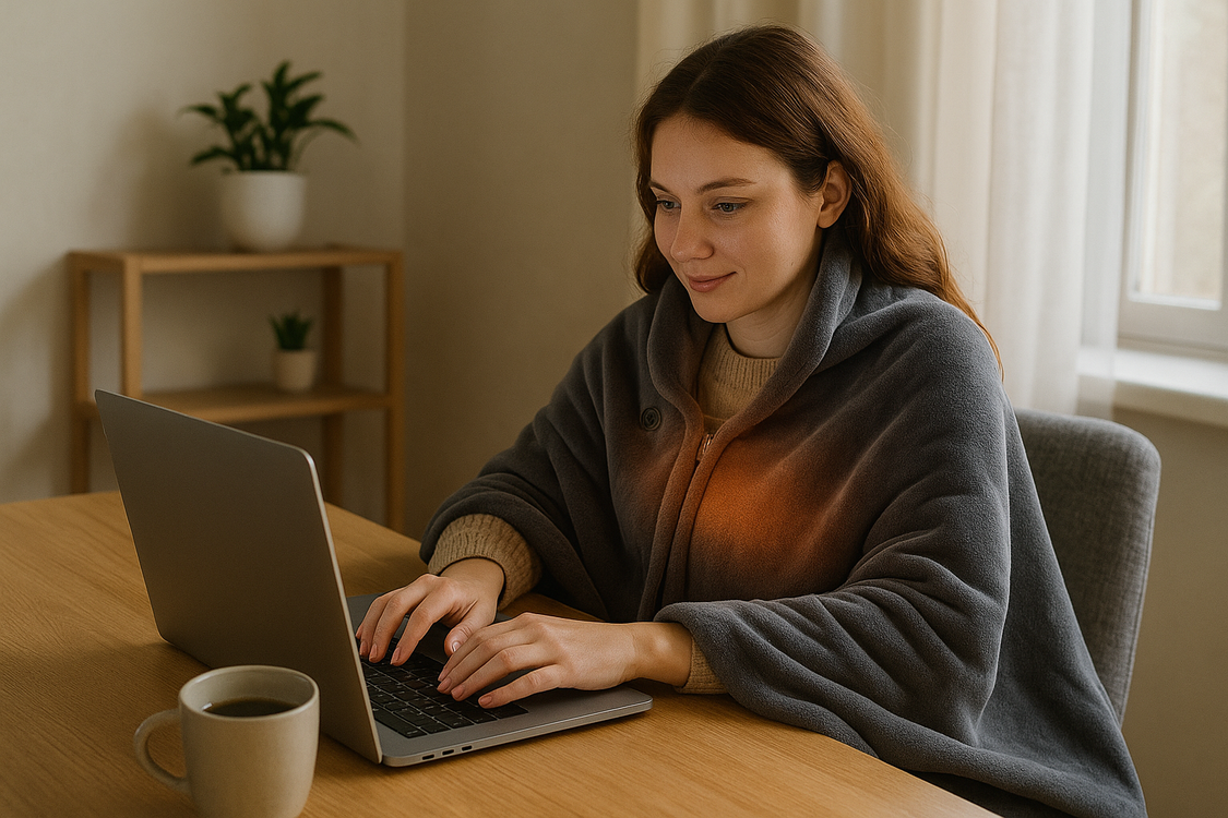 ShawlWarmth — A self-heating throw that moves with you through long winter days — without cranking the thermostat.